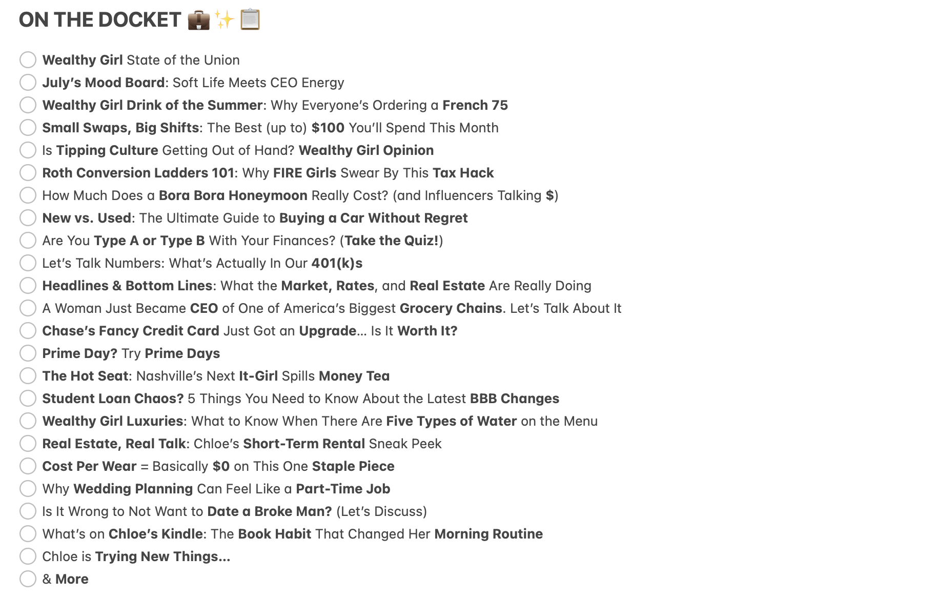 Welcome back, Wealthy Girls.